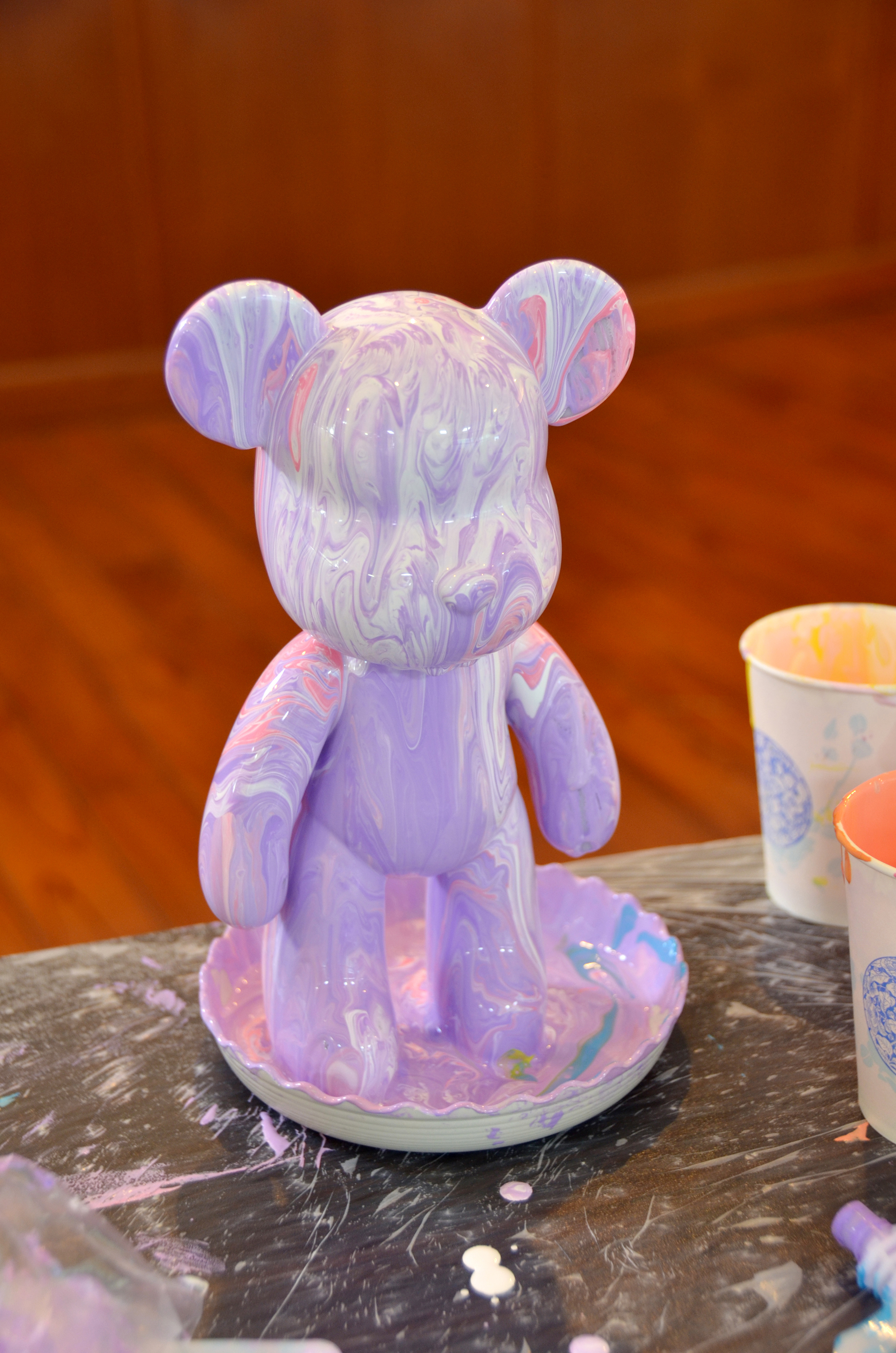 將顏料疊加混合,傾注在流體熊上,顏料自由流動間會充滿偶然性和不可復制的畫面效果,每一個流體熊都是獨一無二的,而你就是藝術家!