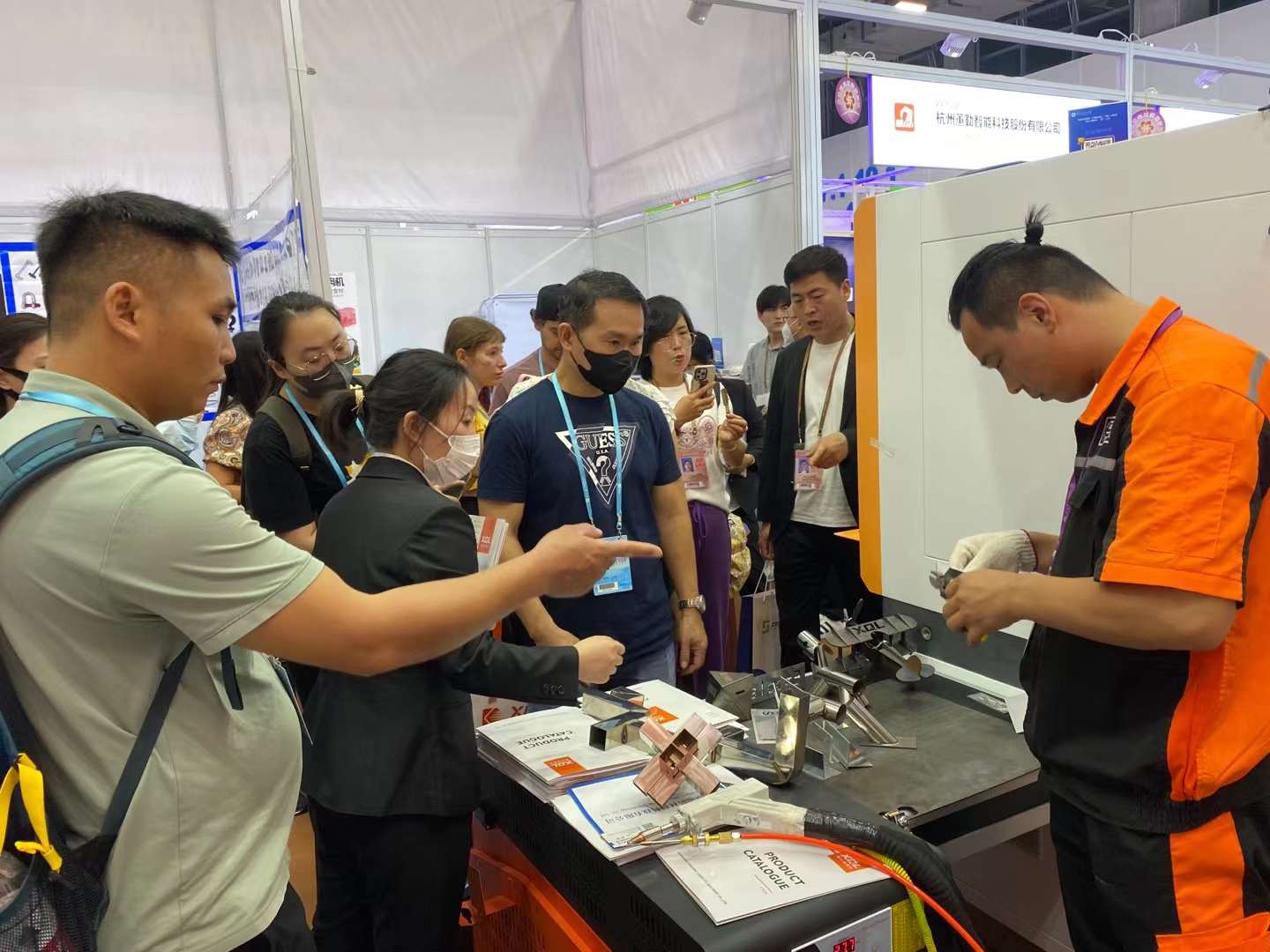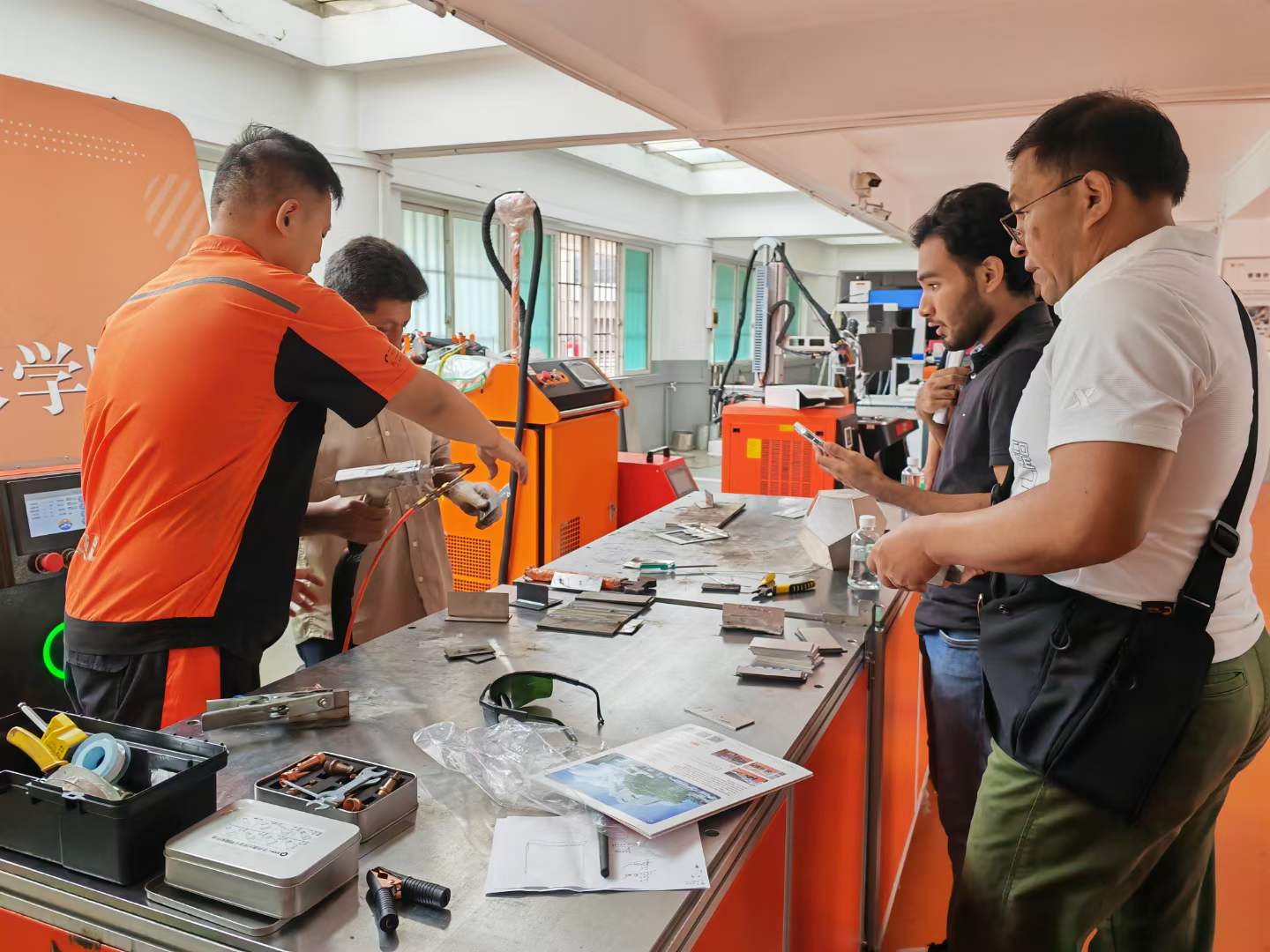 展會期間,來自蒙古、哈薩克斯坦、烏茲別克、澳大利亞、玻利維亞、印度、孟加拉等多位客戶到訪鑫全利激光總部,進行實地參觀考察,洽談合作事宜,我司海外銷售經理熱情接待。