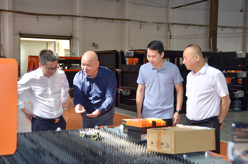 8月15日上午,容桂街道黨工委副書記、辦事處主任歐勝軍,經發辦胡添強總監等一行人蒞臨鑫全利激光指導調研。