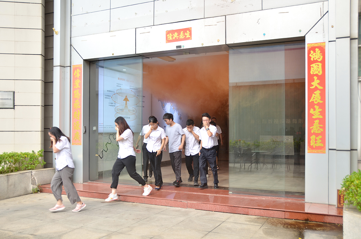 演習正式開始,辦公樓、車間里警聲突然響起,當員工聽到火災報警器異響后,在領導引導下沿著消防通道迅速撤離到安全地帶,整個過程有條不紊,行動迅速有序。當全體參訓人員到達指定集合點后,開始消防知識學習,由專業消防人員就預防火災及消防演習做了相關陳述。