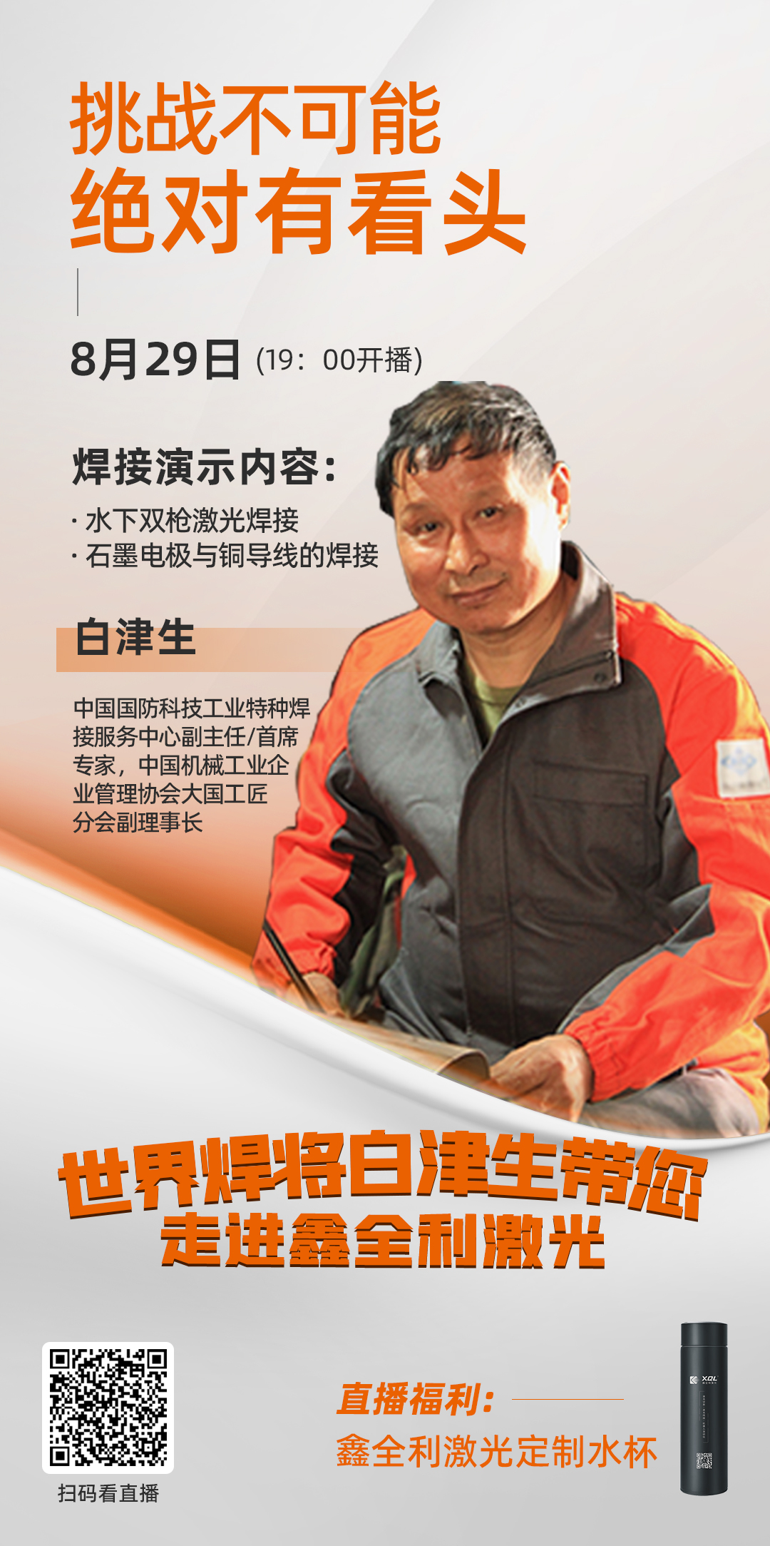 今晚7點直播,世界焊將白津生帶您走進鑫全利激光