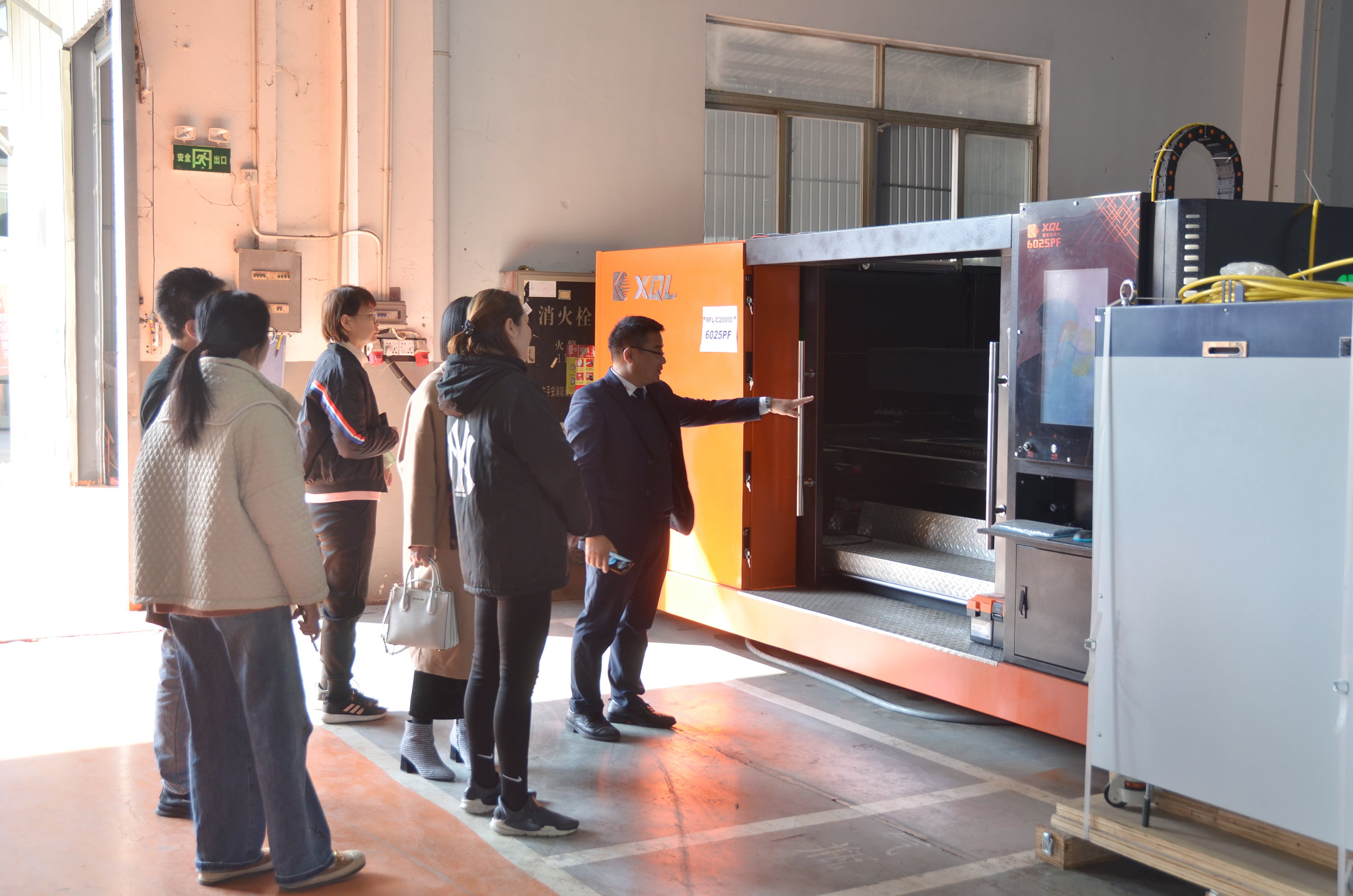 1月25日下午15時,來自全國各地的封邊機行業老板們,在發布會開始前統一參觀了鑫全利激光的工廠與展廳,考察半導體激光封邊機制造流程生產線。并針對板式家具封邊技術加工,尤其是激光封邊機邊等熱點話題和技術難點展開交流。