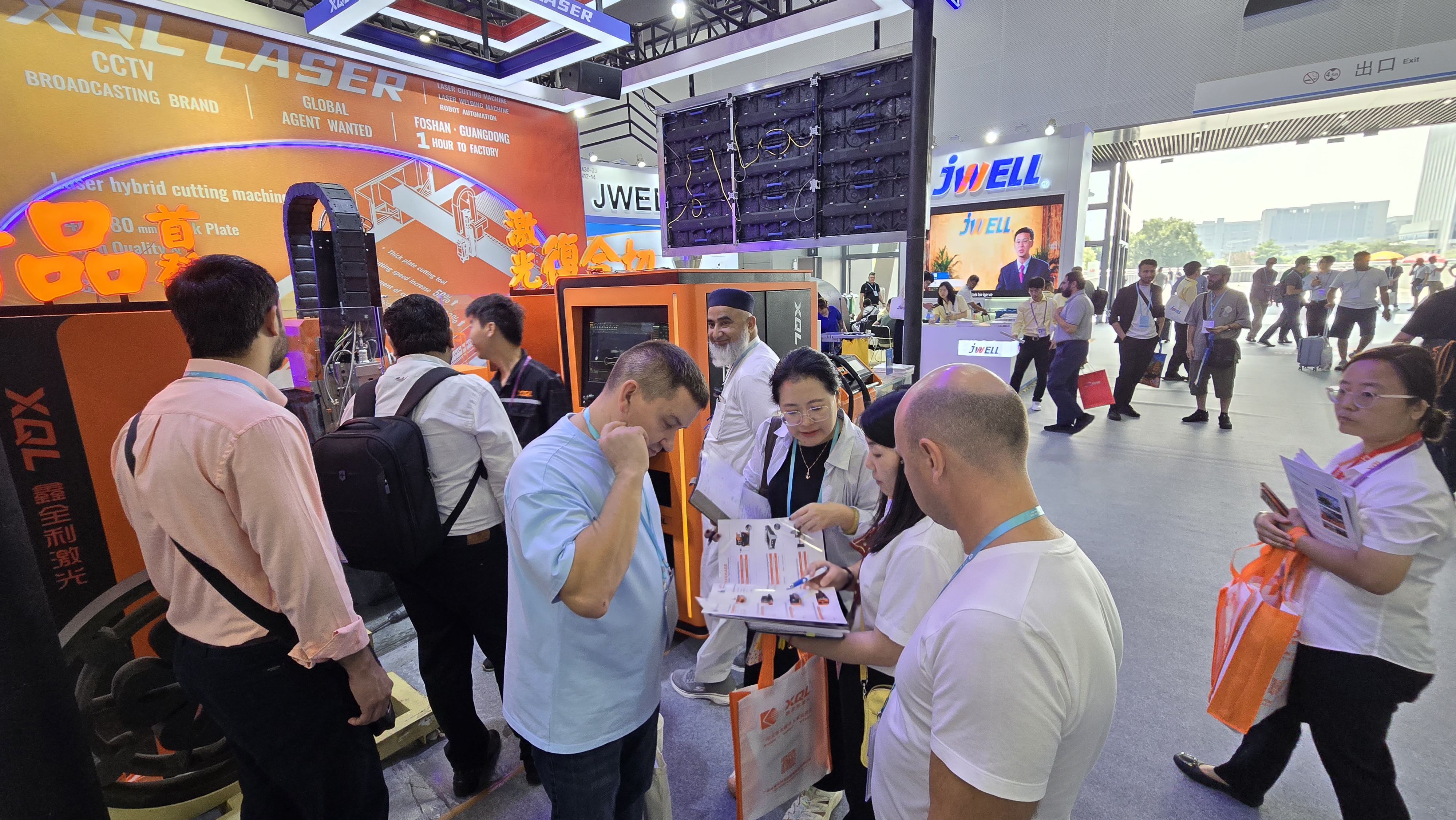 在鑫全利展位,陳列的激光智能裝備產品都得到了參展商的廣泛關注,尤其是“激光復合切割機”吸引了來自歐美、俄羅斯、日韓、東南亞等數十個國家及地區的采購商駐足討論,紛紛與工作人員就產品和合作方向進行深入交流。