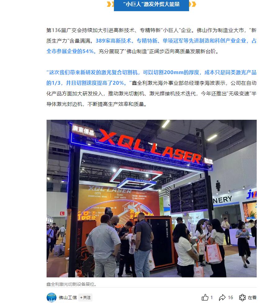 - [2023.04.18]聚焦廣交會現場——鑫全利激光受…