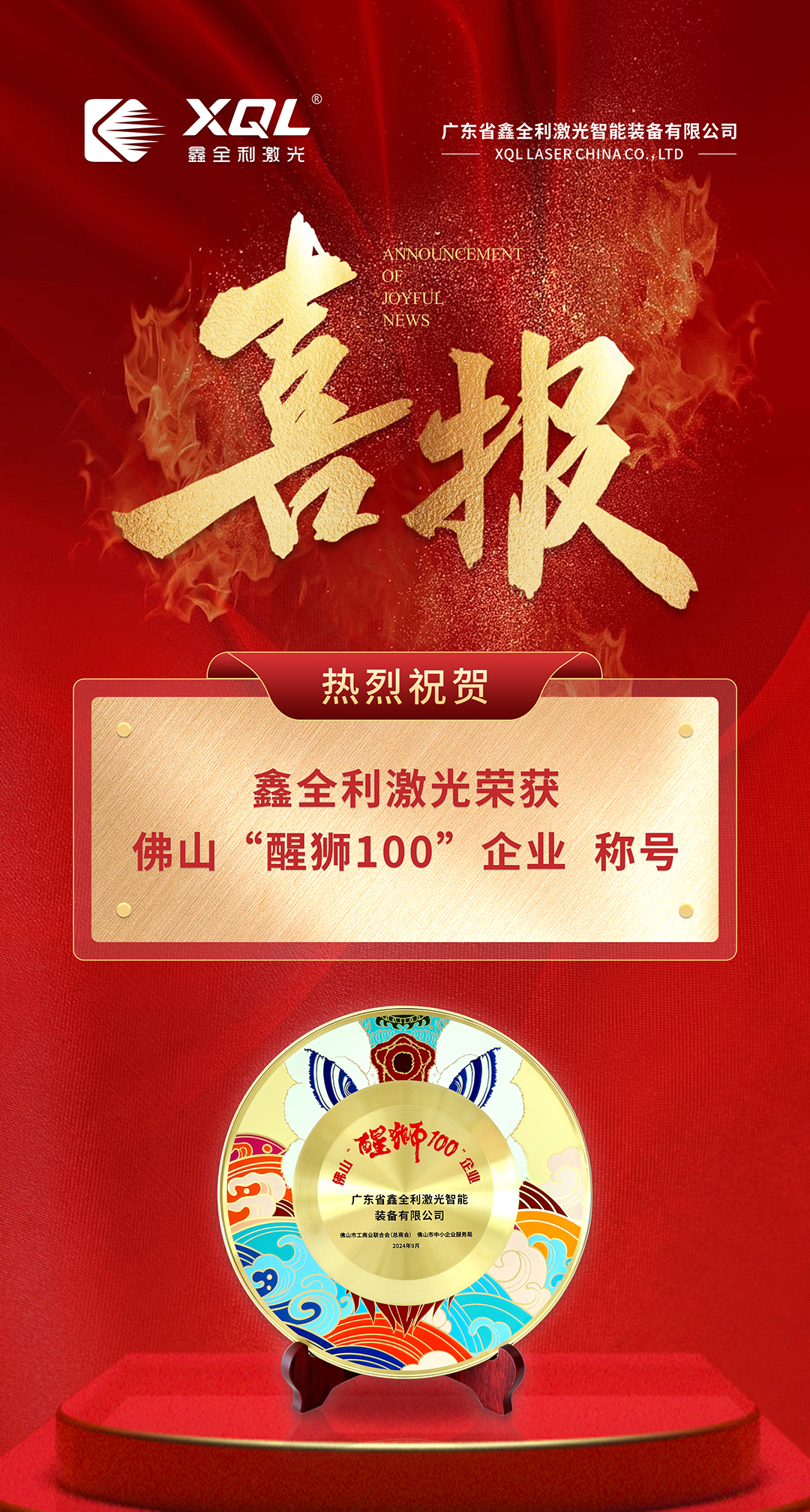 鑫全利激光榮獲佛山“醒獅100”企業,為佛山發展新質生產力貢獻力量!