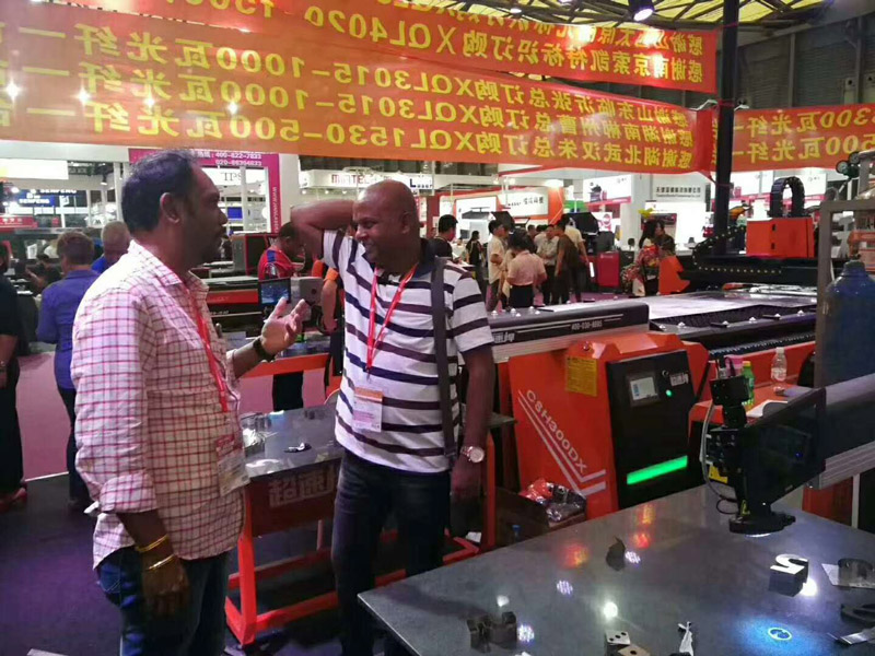 在展會現場,技術人員對XQL-3015雙驅光纖激光切割機進行了實際的操作演示,對不同厚度的金屬板材切割,整個切割過程耗時不過數秒。