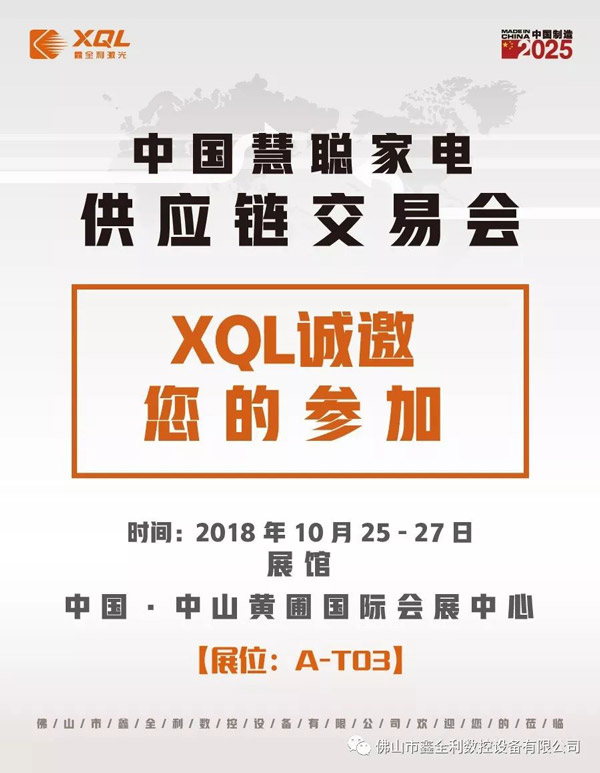【展會邀請函】鑫全利激光約您共赴2018年中國慧聰家電供應鏈交易會
