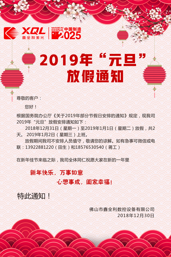 【喜迎佳節(jié)】鑫全激光全體同仁祝您:元旦快樂(lè),福滿新年!