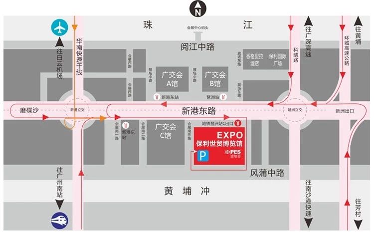 b、廣州南站:2號線→昌崗(轉8號線)→琶洲站C/D出口