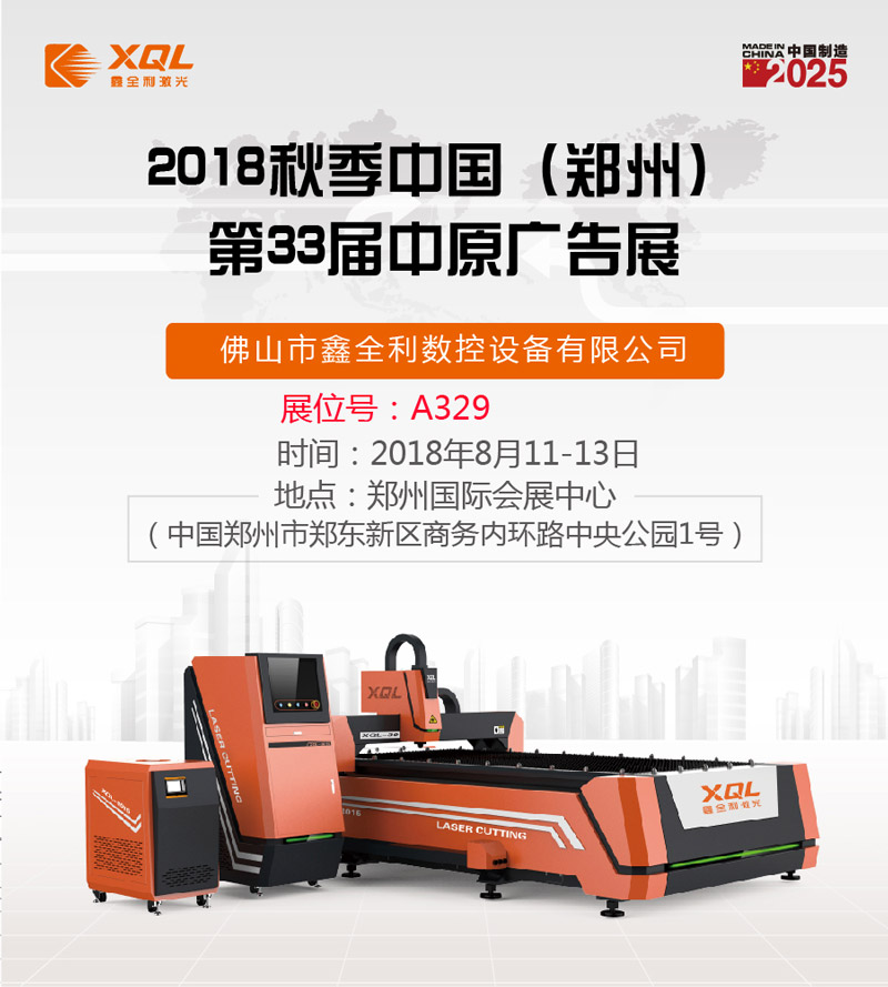 2018-8.11——2018-8.13,將迎來鑫全利激光本月第一場參展展會,2018秋季中國(鄭州)第33屆中原廣告展(以下簡稱“中原廣告展”),本次展會,鑫全利激光再次攜手鄭州標識域合作推出多款激光設備參展,囊括光纖激光切割機,“超速悍”激光焊字機、“精工悍”激光焊字機等多款設備亮相鄭州廣告展。想要現場領略鑫全利激光設備風采的,千萬不要錯過這一年兩度的秋季中原廣告展哦!我司展位號為:A329,誠摯期待您的蒞臨。