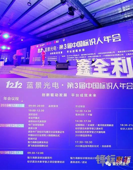 12月12日,“第3屆中國標識人年會”在廣東英德澳飛揚標識產業園隆重召開,超1200名中國標識人及標識行業精英參與,此次年會精彩紛呈,并取得圓滿成功。