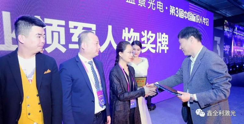 中國廣告協會副秘書長趙踐為鑫全利激光董事長頒發行業領軍人物獎牌