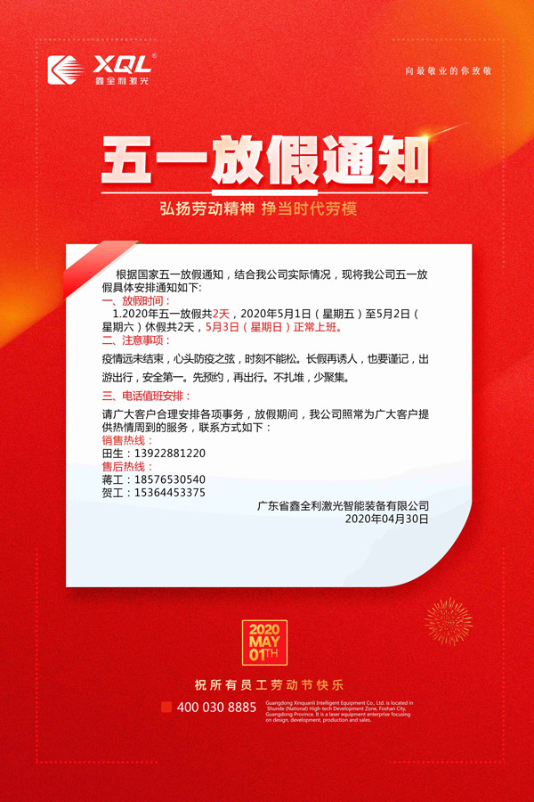 根據國家五一放假通知,結合我公司實際情況,現將我公司五一放假具體安排通知如下: