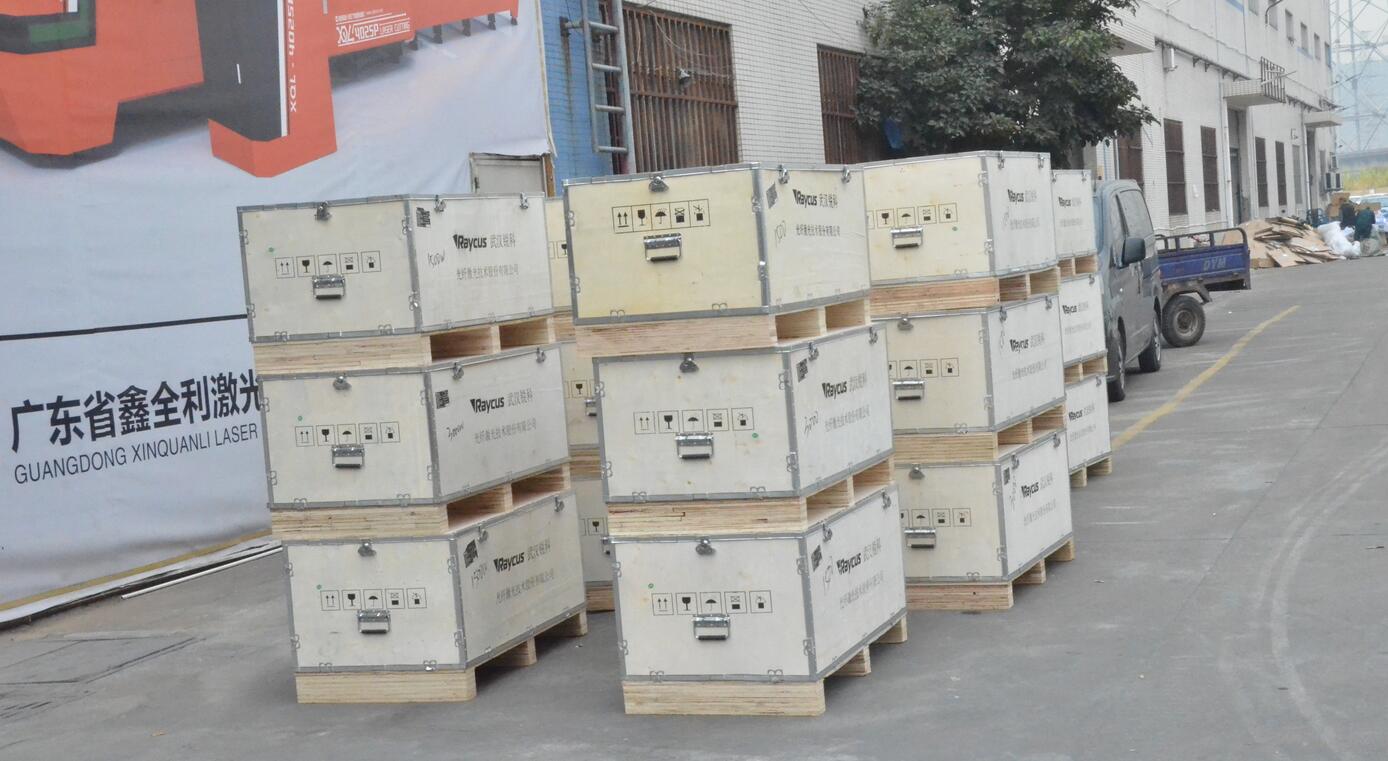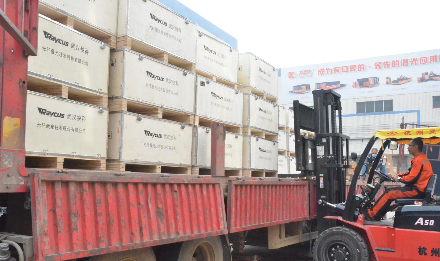 都說備貨忙,備貨忙;忙,是充實的體現。昨天上午,鑫全利激光廠區內氣氛火熱,總價值兩千多萬的激光器正待卸貨進倉,17.5米平板拖車和9.6米的廂式大貨車兩邊排開,一輛輛叉車往返穿梭加急卸貨,節奏緊湊而有序。與此同時,鑫全利倉庫也在加緊時間進行騰倉擴容,備足貨源,全力備戰即將到來的年終購機大潮!
