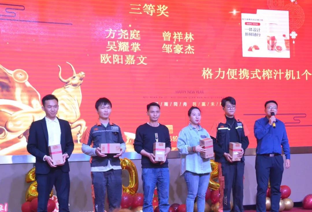表演到此就落幕啦,但并不代表年會盛典的結(jié)束,接下來是更為激動人心的抽獎環(huán)節(jié)。獎品豐富,中獎率高,抽獎環(huán)節(jié)從三等獎開始依序往特等獎一一揭曉,歡呼聲一浪高過一浪。